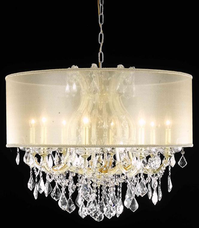 2800 Maria Theresa Collection Hanging Fixture w/ Gold Round Shade D30in H26in Lt:8+1 Gold Finish (Royal Cut Crystal)