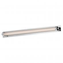 Clear ribbed glass encases a tube of opal white acrylic evenly illuminated by LED. The ends of the glass shade are fitted with knurled cylinder forms that suspend the sconces from their mounting plates. Dual mounted options are available for this series al
