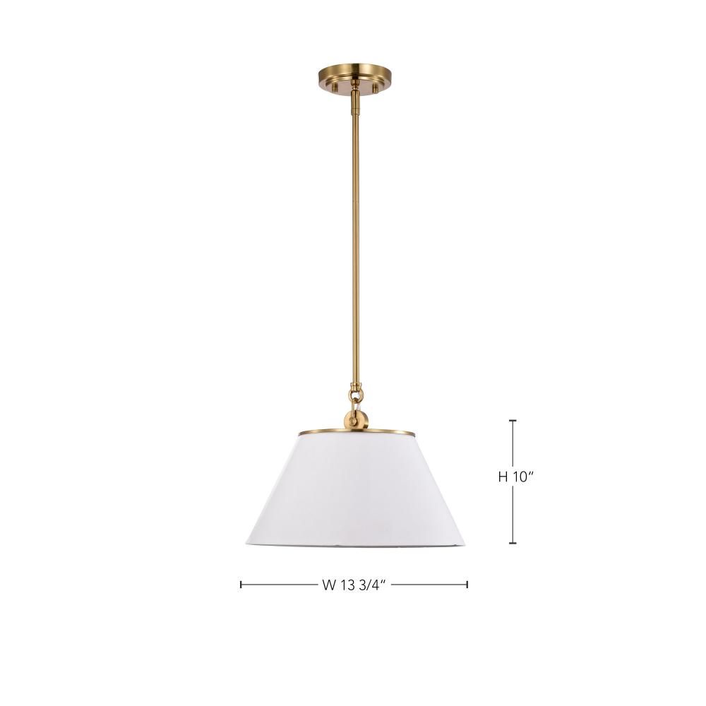 With subtle detailing, the Dover medium pendant is graceful yet unassuming. The simple white shade features a white lining to reflect the light, and the trim is finished in vintage brass to match the fixture's body. Place a trio of them over the kitche