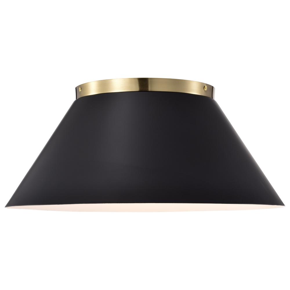 Dover; 3 Light; Large Flush Mount; Black with Vintage Brass