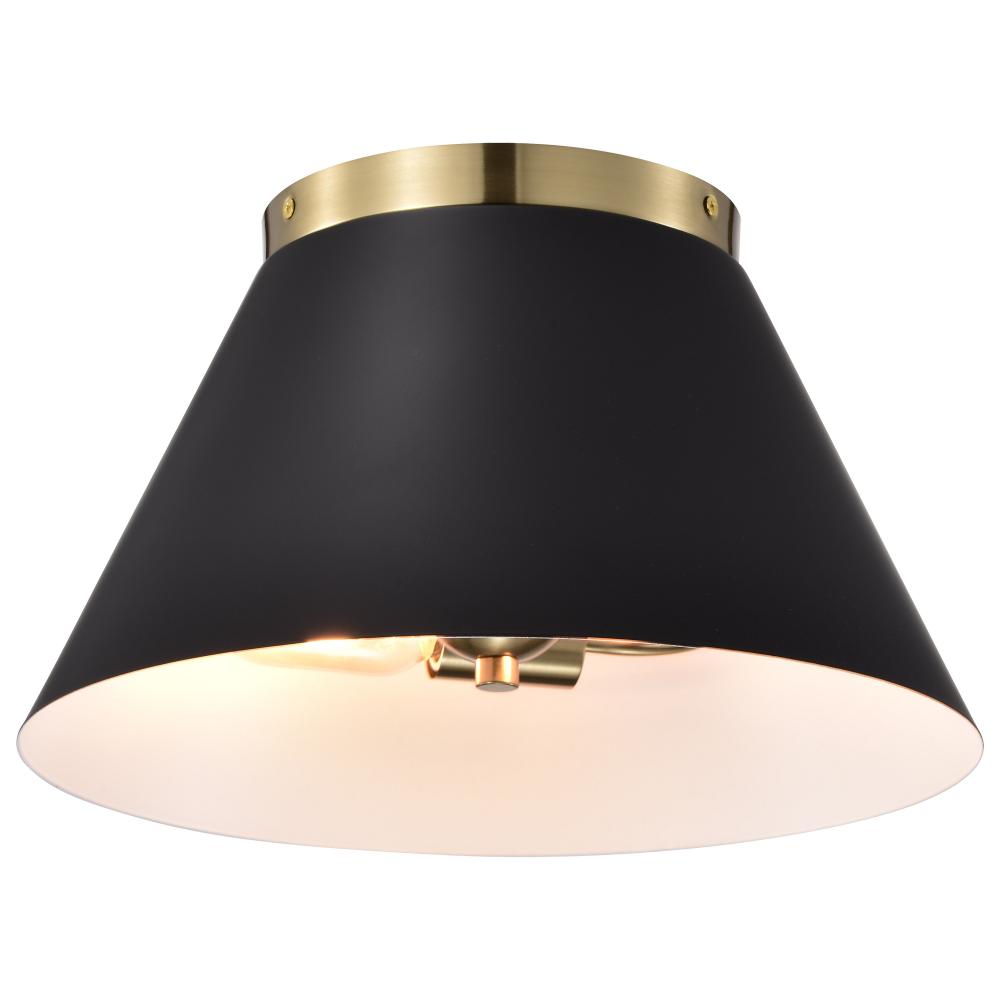 With subtle detailing, the Dover 60-7417 small flush mount is graceful yet unassuming. The simple black shade features a white lining to reflect the light, and the trim is finished in vintage brass to match the fixture's body. Place over a table in an