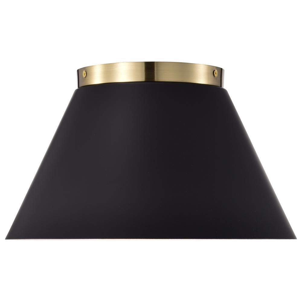 Dover; 3 Light; Small Flush Mount; Black with Vintage Brass