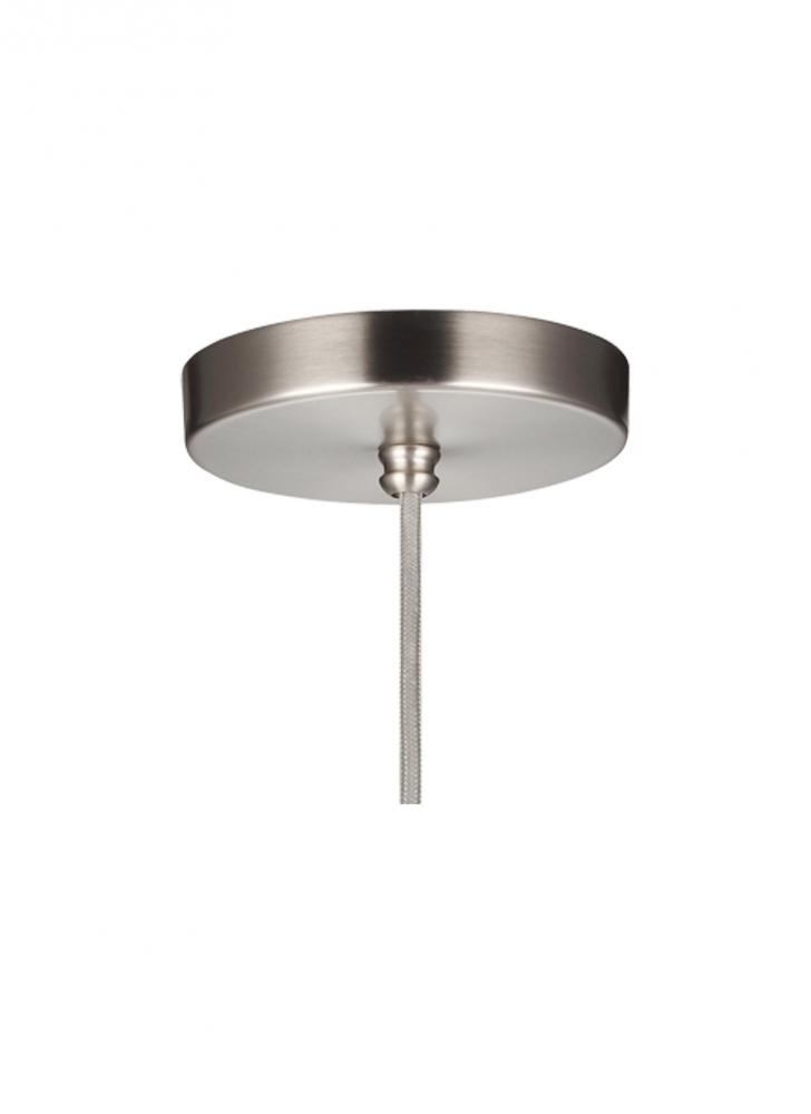 The Doyle one light mini pendant in satin nickel enhances the beauty of your home with ample light and style to match today's trends. The Doyle one-light mini pendant springs to life with the fine artistry and technique of hand-blown glass. Spindle-inspired Clear glass shades give dimension and character to these traditional pendant lights. Paired with Edison-style bulbs, this mini pendant is a period-inspired classic to complement a wide range of decor from Colonial to nautical to rich, European inspired settings. Available in two sizes and two hardware finishes, Oil Rubbed Bronze and Satin Nickel, Doyle mini pendants may be installed as single pendants or clustered in multiples using a Visual Comfort Studio Multi-Port canopy, which would be an ideal installation used for entry lighting, dining room lighting, living room lighting or kitchen lighting over a table.