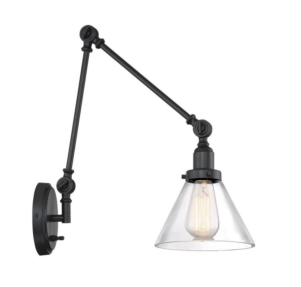 This Savoy House Drake 1-light sconce has an alluringly simple style with a few choice hardware details and a shade of clear glass. The adjustable sconce can be hard-wired or used with the included cord and plug. There is an on-off switch on the backplate. Bulb not included. Finished in English bronze. Adjustable sconces are a perfect idea for use at the bedside, taking the place of bedside table lamps, and are also ideal task lighting for living rooms and other spaces! The English bronze finish can be paired with bronze hardware or mixed with hardware in other fixtures. Add Drake to industrial, transitional or contemporary rooms for a bold look. When you choose a Savoy House lighting fixture, you can be certain you’ve selected a piece that will withstand the test of time.
