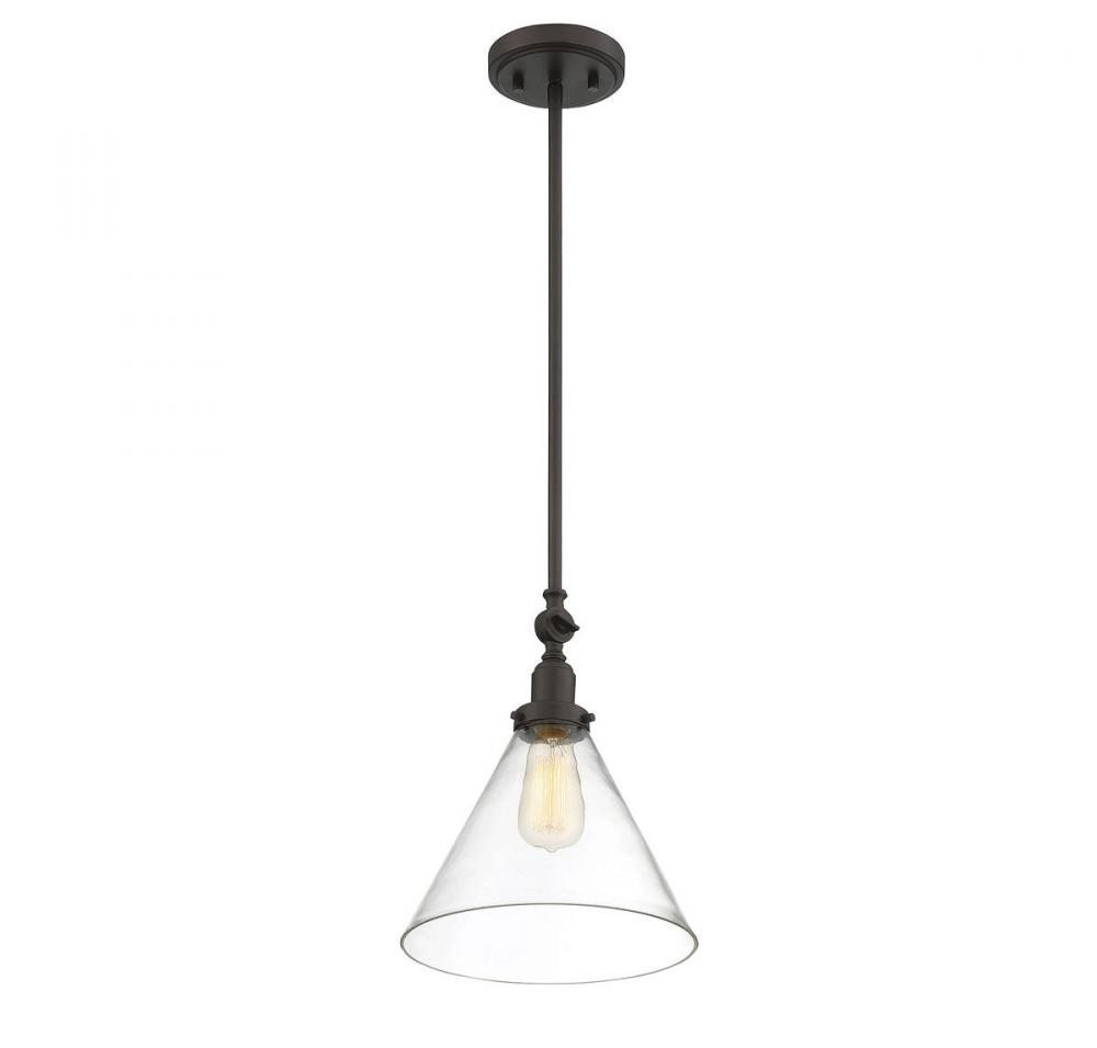 This Savoy House Drake 1-light pendant has an alluringly simple style with a few choice hardware details and a shade of clear glass. It has a fully adjustable pendant head that allows for directional or targeted lighting. Finished in English bronze. Pendants are extremely versatile and can fit in many different spaces, such as kitchens, family rooms, great rooms, foyers, entryways, offices, bedrooms and bathrooms. This pendant comes with three 9.5-inch downrods, so you can get the perfect hanging height for your needs, and it can be hung on a sloped ceiling. Bulb not included. You can pair Drake with hardware finished in bronze or mix it with hardware in other finishes. Its understated looks means it is an excellent choice for a wide variety of decor styles. When you choose a Savoy House lighting fixture, you can be certain you've selected a piece that will withstand the test of time.