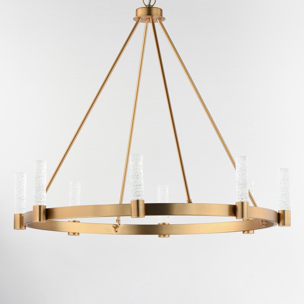 The Duchess collection seamlessly blends traditional brass craftsmanship with modern piastra-style Iceberg glass, illuminated by integrated LED modules. Powered by a commercially rated LED driver with 120-277V input, the low-voltage LEDs deliver a neutral