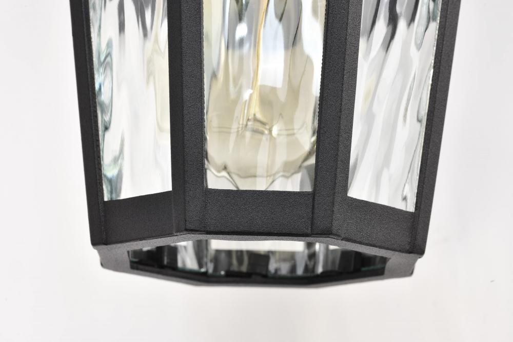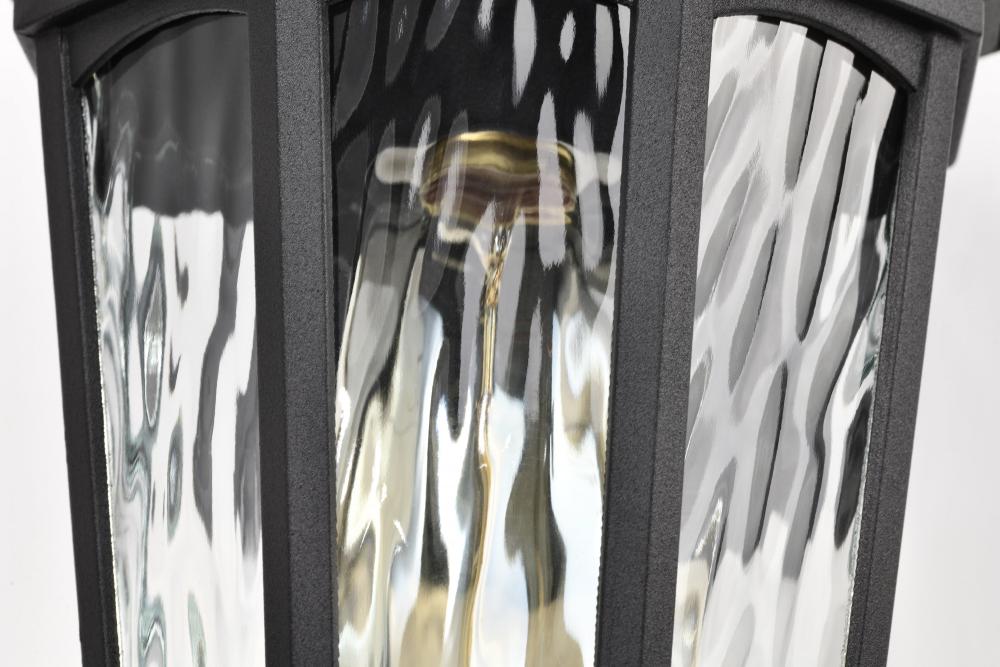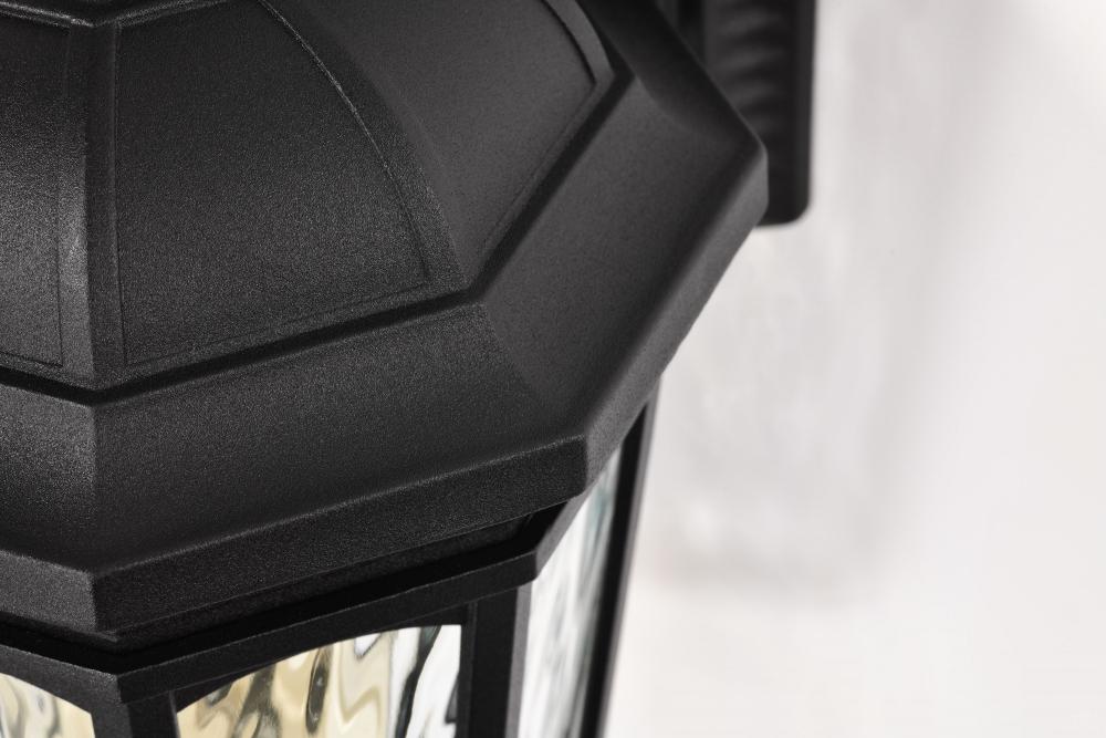 With a hint of provincial design, the East River Outdoor Collection features old-world charm combined with today's style. The rippling, clear water glass dances in the light, and is encased in a beautifully designed fixture with a matte black finish hi