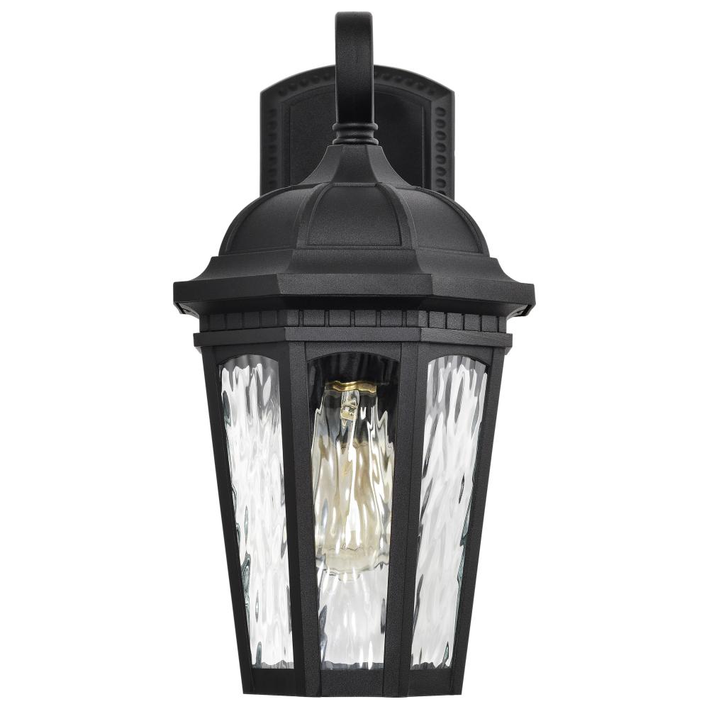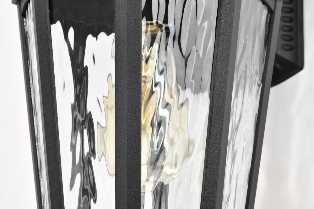 With a hint of provincial design, the East River Outdoor Collection features old-world charm combined with today's style. The rippling, clear water glass dances in the light, and is encased in a beautifully designed fixture with a matte black finish hi