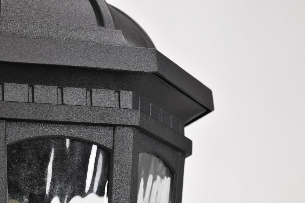 With a hint of provincial design, the East River Outdoor Collection features old-world charm combined with today's style. The rippling, clear water glass dances in the light, and is encased in a beautifully designed fixture with a matte black finish hi