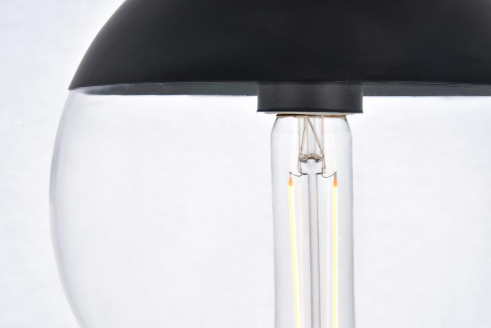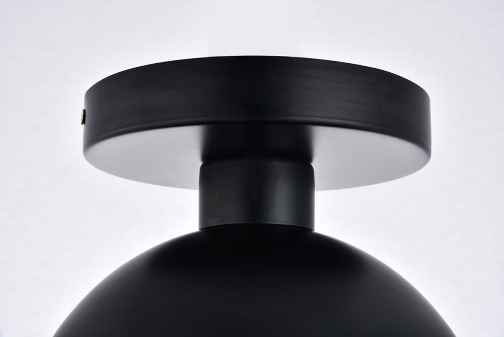 Refined style with a practical design, Eclipse flush mount bring cosmopolitan sophistication anywhere, especially to an entryway, office, bathroom, bedroom, or kitchen. The smooth iron frame features a disk-shaped canopy and comes in a black finish. A touch of color on top of the clear spherical glass shade brings character to this classic style. Living in the big city has never been this easy.