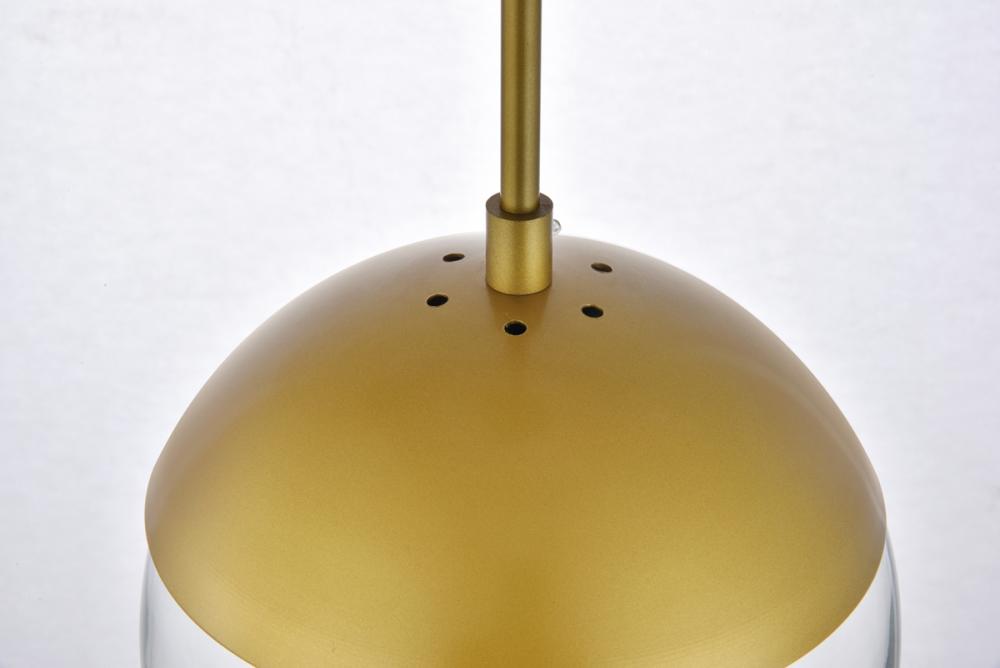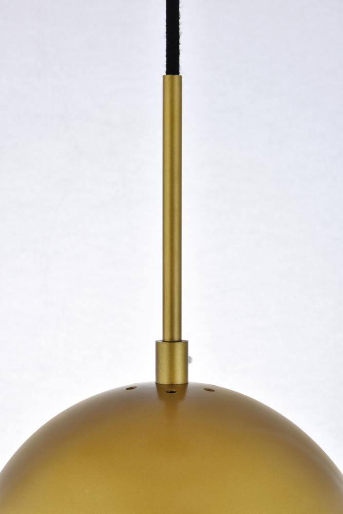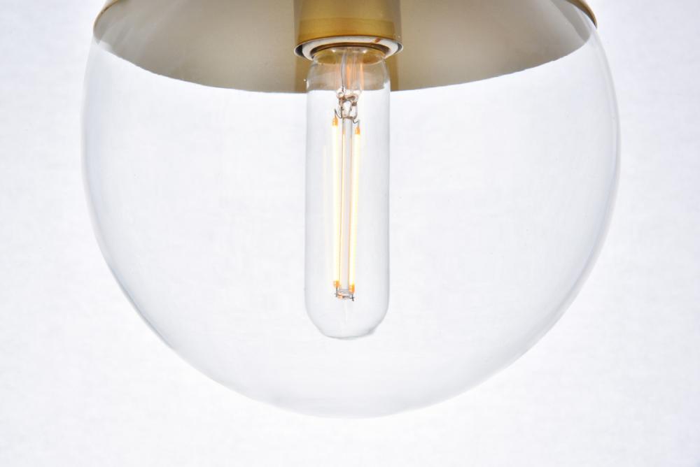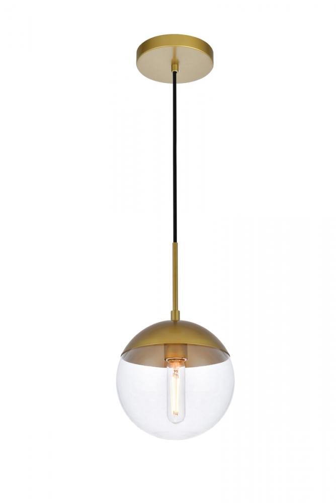 Refined style with a practical design, Eclipse hanging pendant lamps bring cosmopolitan sophistication anywhere, especially to an entryway, office, bathroom, bedroom, or kitchen. The smooth iron frame features a disk-shaped canopy and comes in a brass finish. An adjustable black cord allows you to vary the hanging height from 16 to 63 inches. A touch of color on top of the clear spherical glass shade brings character to this classic style. Living in the big city has never been this easy.