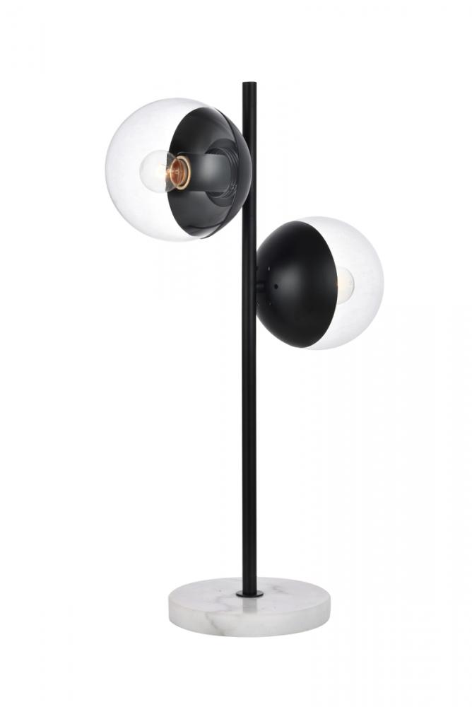Refined style with a practical design, Eclipse Table Lamp bring cosmopolitan sophistication anywhere, especially to an entryway, office, bathroom, bedroom, or kitchen. The smooth marble base anchors the table lamp and comes in a black finish. A touch of color on top of the clear spherical glass shade brings character to this classic style. Living in the big city has never been this easy.