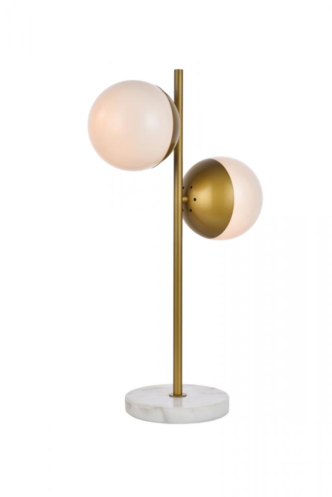 Refined style with a practical design, Eclipse Table Lamp bring cosmopolitan sophistication anywhere, especially to an entryway, office, bathroom, bedroom, or kitchen. The smooth marble base anchors the table lamp and comes in a brass finish. A touch of color on top of the frosted white spherical glass shade brings character to this classic style. Living in the big city has never been this easy.