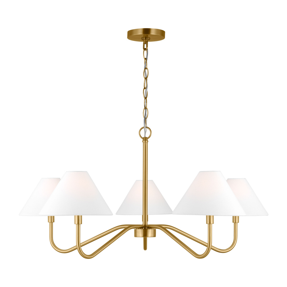 This series combines thin, curved arms with white linen shades for a modern touch