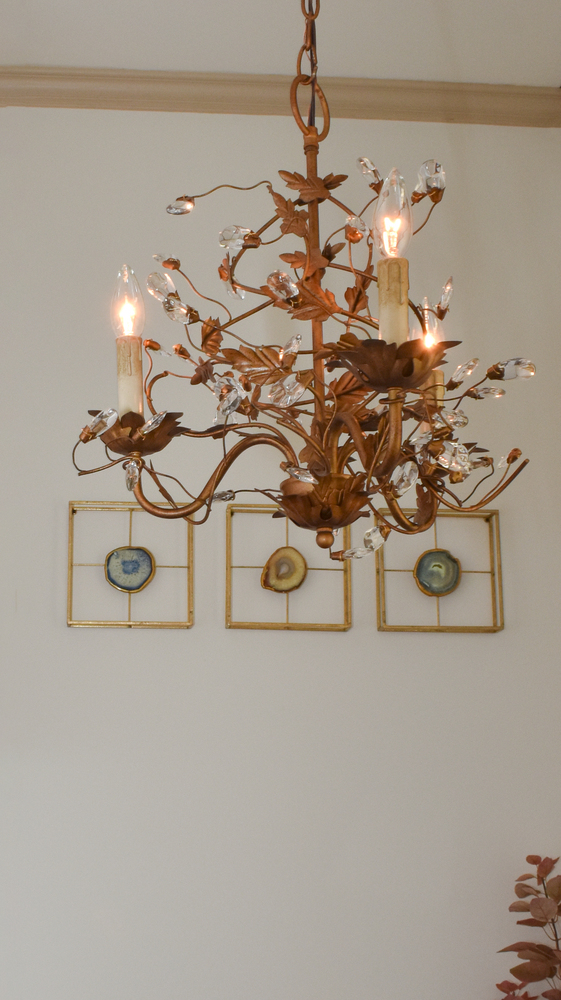 One of our most popular collections, Elegante combines lighting with decorating. Delicate leaves and crystals top the wrap-around vines. Offered in Etruscan Gold or Oil Rubbed Bronze.