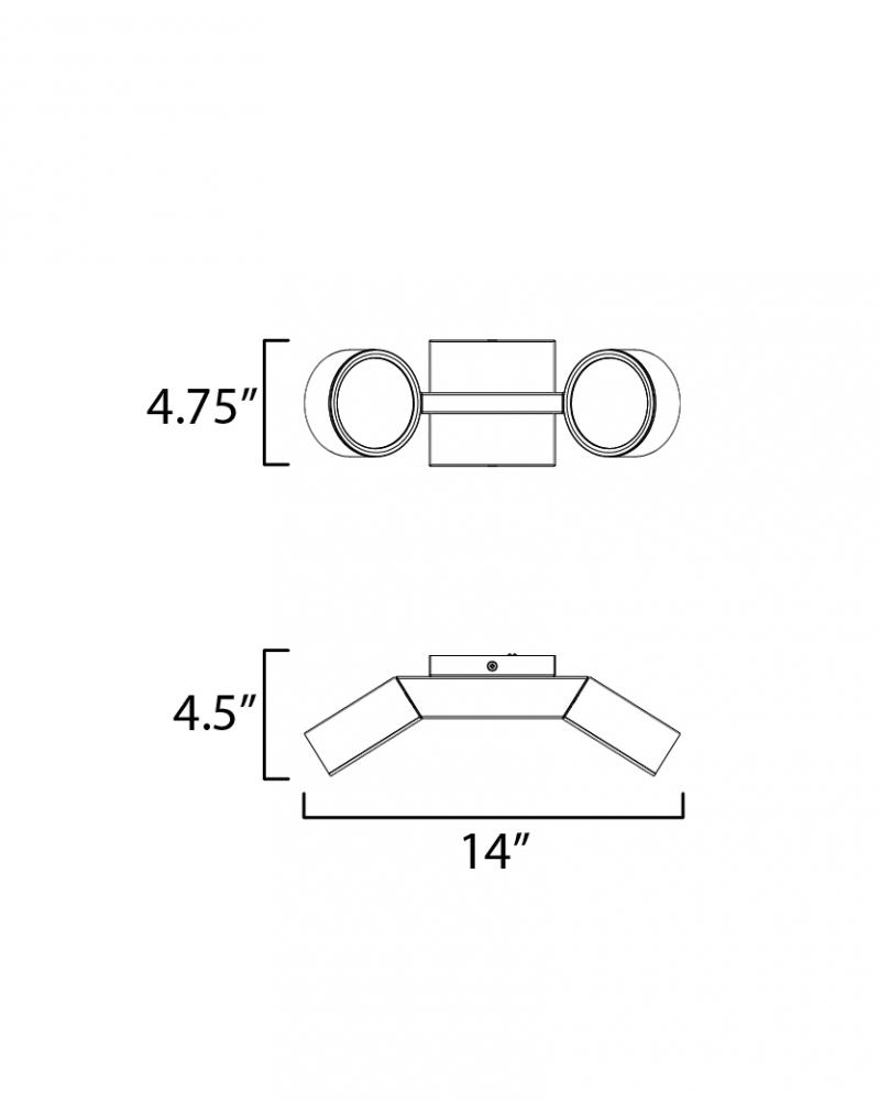 A modern matte black frame crafted with rectilinear tubing supports circular LED light modules. Designed to appear as if they are facing each other in an embrace, the modules create a harmonious and dynamic aesthetic. The two modules, positioned at opposit