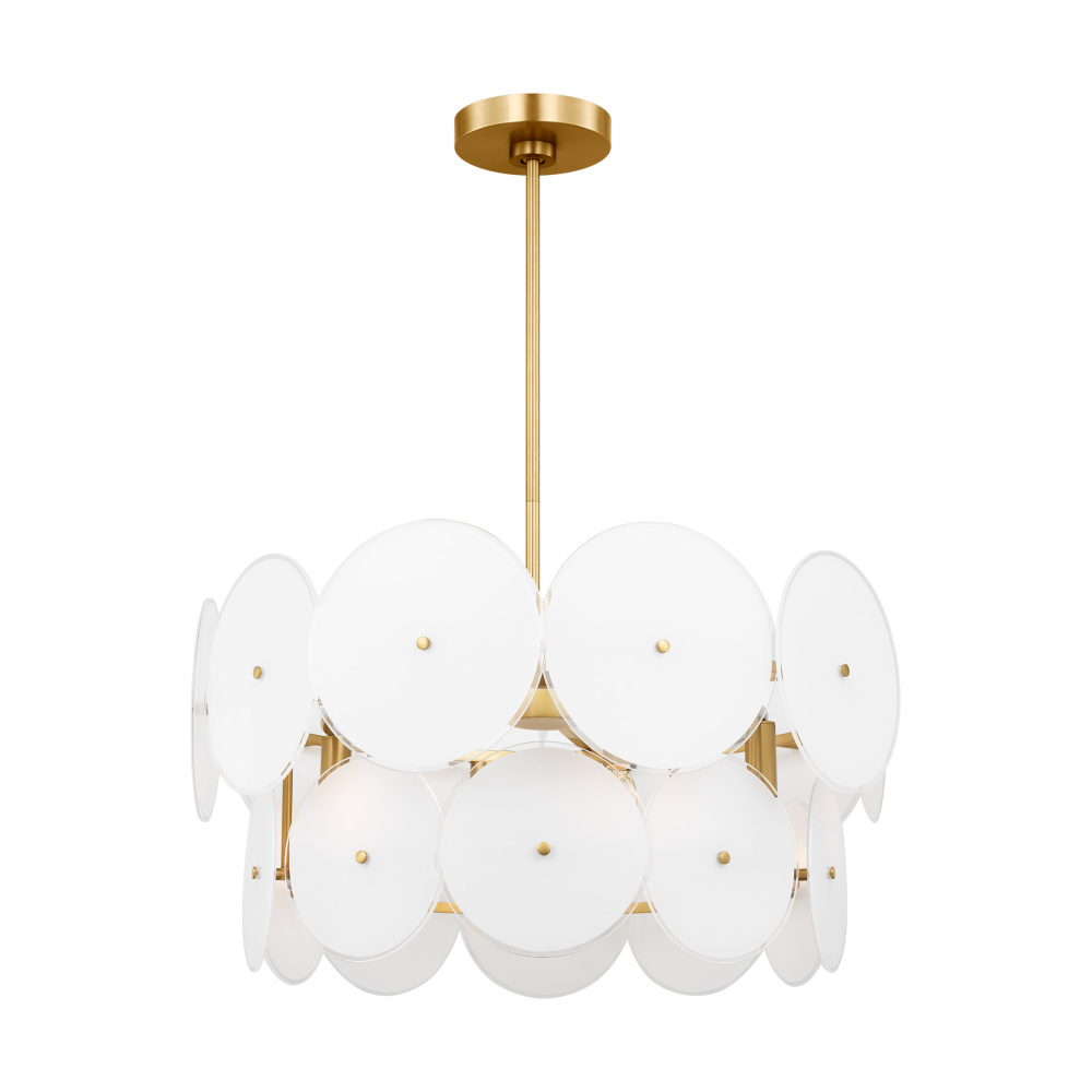 Beautiful glass discs cascade down the fixture to give the Emery series a playful tone. Designed to captivate and illuminate with its timeless elegance and refined sophistication. Inspired by the iconic Kate Spade (AW vs. kate spade new york) brand, the Emery series is a perfect blend of luxury, style, and functionality, adding a touch of glamour to any room in your home.