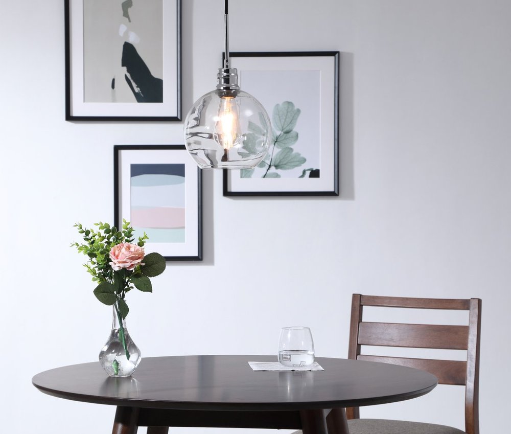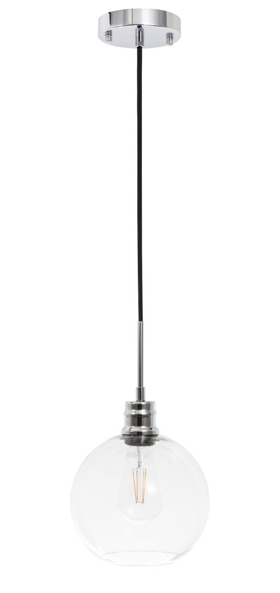 Clean lines and modern whimsy--that's the Emett Collection of pendant lamps. Its Single light makes it perfect for any small apartment or room space, but its also a perfect addition to any larger rooms that requires illumination, such as a dining room or living room. Available in a black, chrome, or brass finish with a round clear glass shade, it won't be too hard to fit this versatile lighting fixture in your home (light bulbs not included).