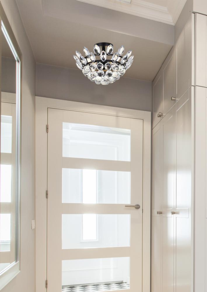 Install this flush mount in any room to give an elegant look. This stunning light features hand painted finish and clear brillant crystals which gives a classy look. Set a cozy atmosphere when you switch on this dazzling fixture and captivate your guests.