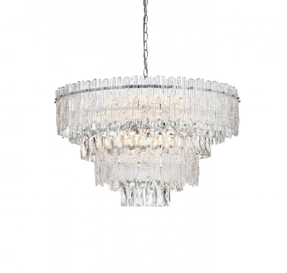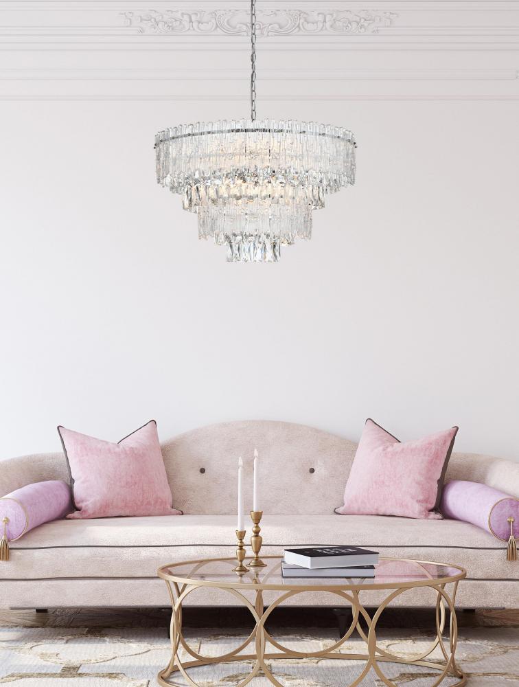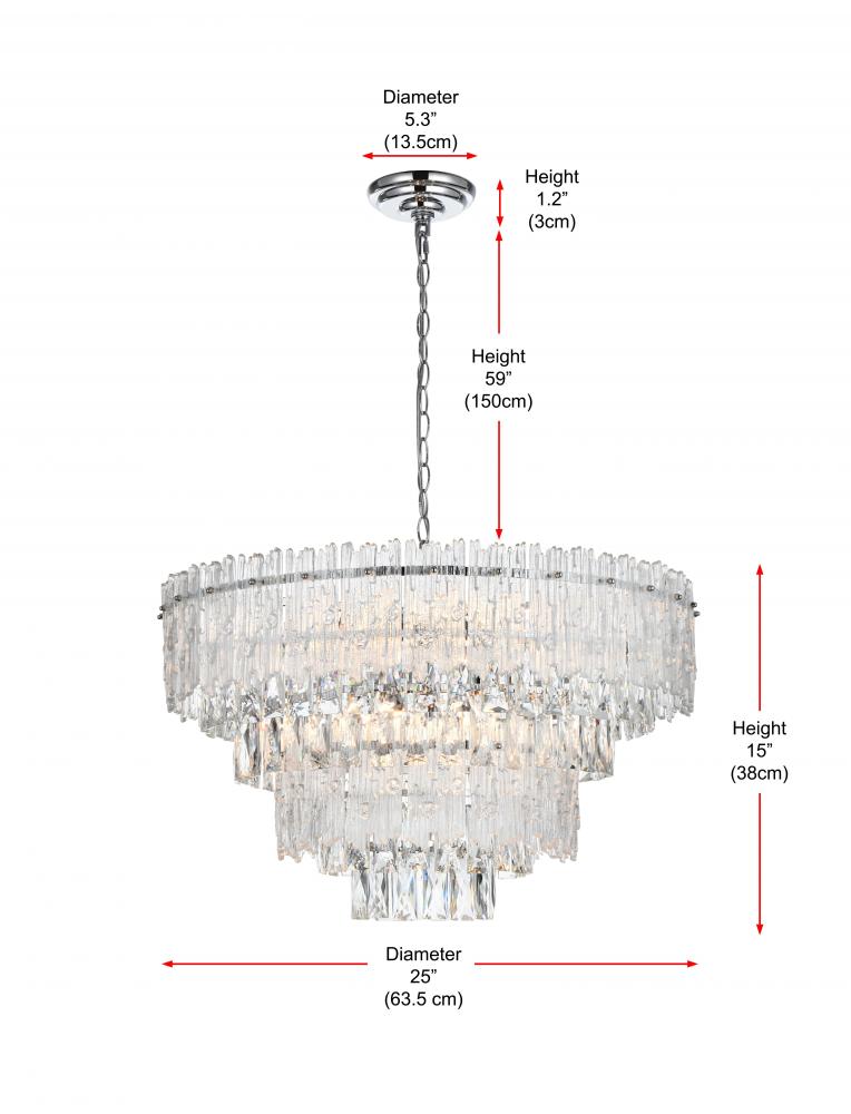 Features multiple tiers of high-quality crystal prisms that create a captivating display of light and sparkle.