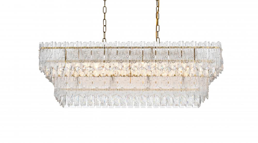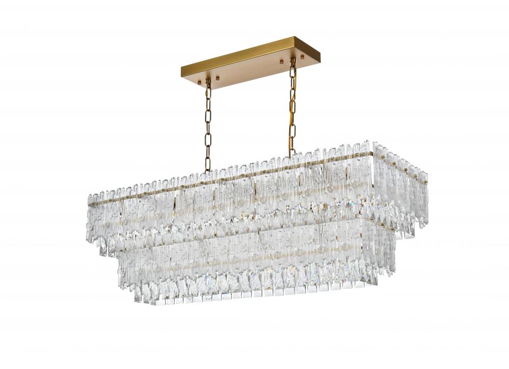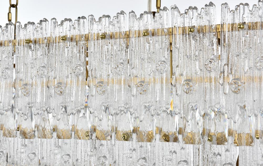 The combination of clear crystals and textured glass creates a sophisticated light play, perfect for setting an elegant mood.