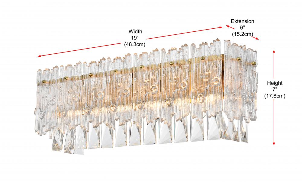 Transform your home with the opulent charm of this indoor lighting, meticulously designed to make a statement in any space. The light fixture showcases an intricate array of precision-cut clear crystals, each expertly faceted to maximize light refraction and create a dazzling display of brilliance. These crystals are complemented by textured glass accents that add depth and visual interest, casting a soft, shimmering glow across the room. Available in your choice of chrome or satin gold finishes, it is the epitome of luxury and modern elegance. As part of a coordinated collection, it also includes matching chandeliers, wall sconces and flush mounts, allowing you to create a harmonious lighting scheme throughout your home.