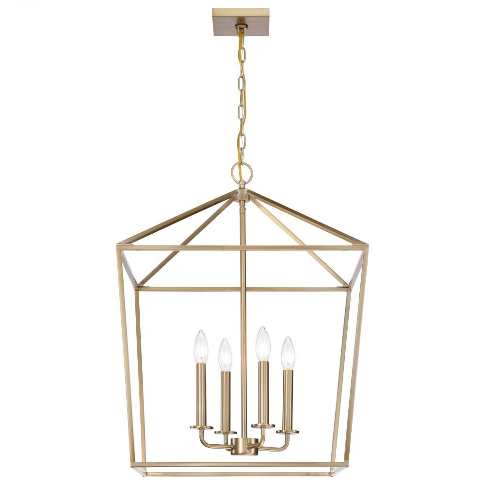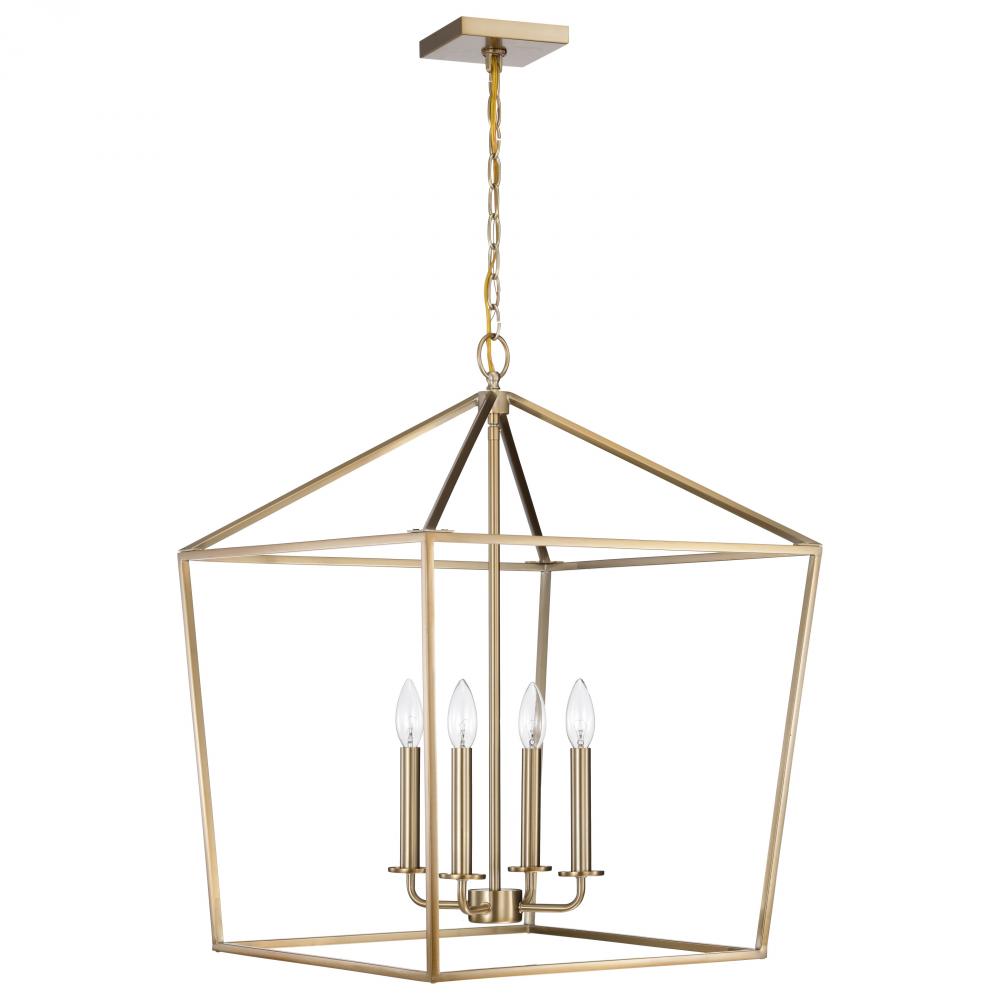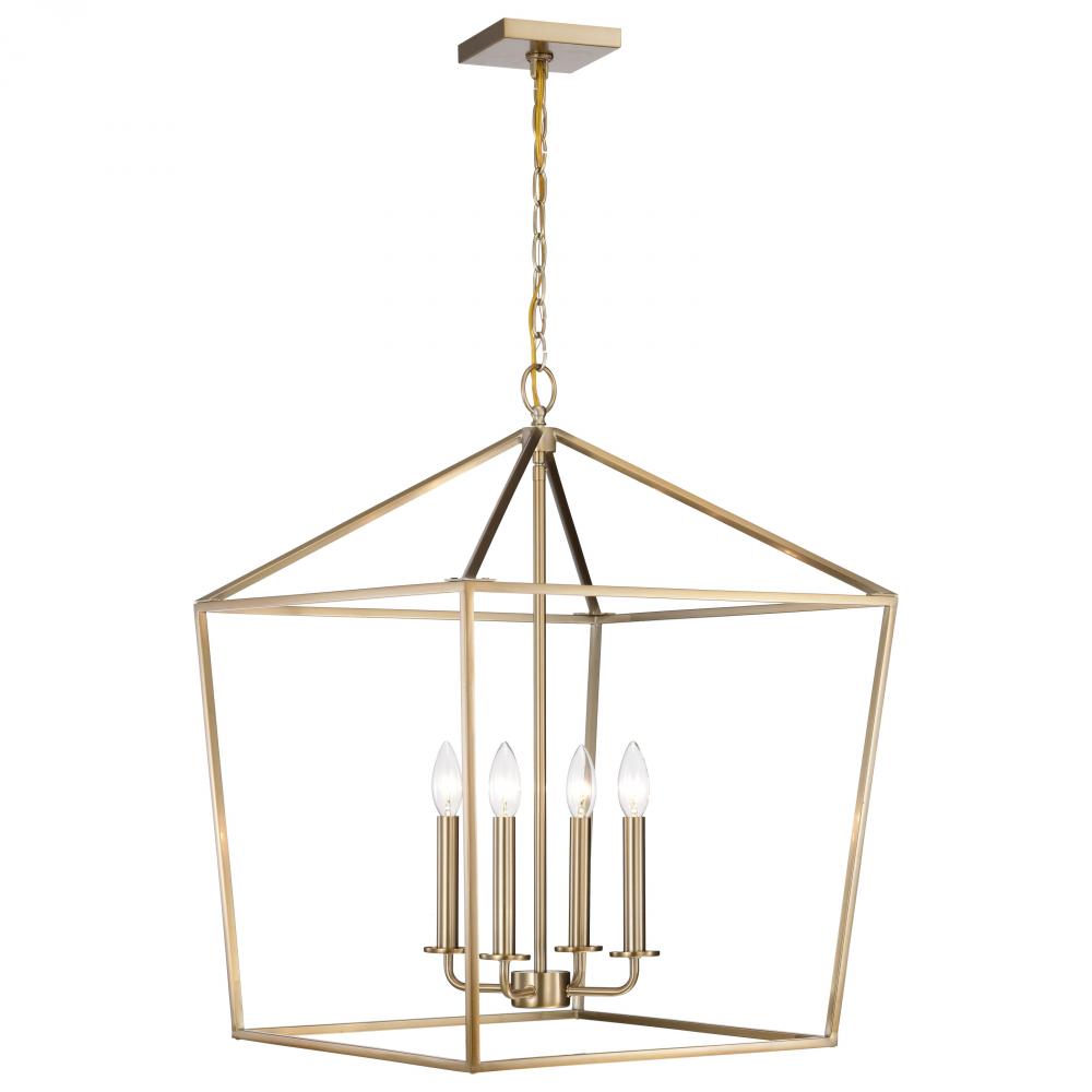 A stylish lighting fixture that combines transitional elements with minimal design, Emma 60-7932 large pendant is a knockout. The warmth of the burnished brass finish on the simple framework is highlighted by four candelabra bulbs, exuding elegant charm wi