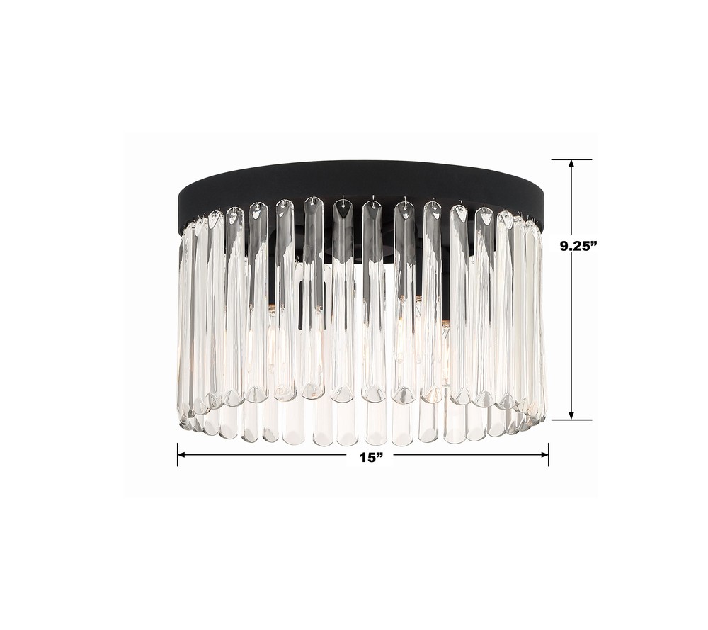 Art deco design is exemplified in the Emory collection. The collection features a row of smooth glass prisms hanging from a steel frame. Both the Black Forged and Modern Gold finishes, add all the sparkle and glamour you need in a fixture.