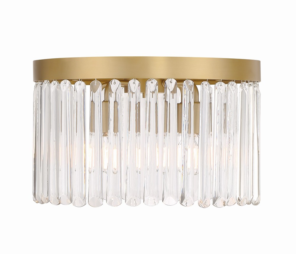 Art deco design is exemplified in the Emory collection. The collection features a row of smooth glass prisms hanging from a steel frame. Both the Black Forged and Modern Gold finishes, add all the sparkle and glamour you need in a fixture.
