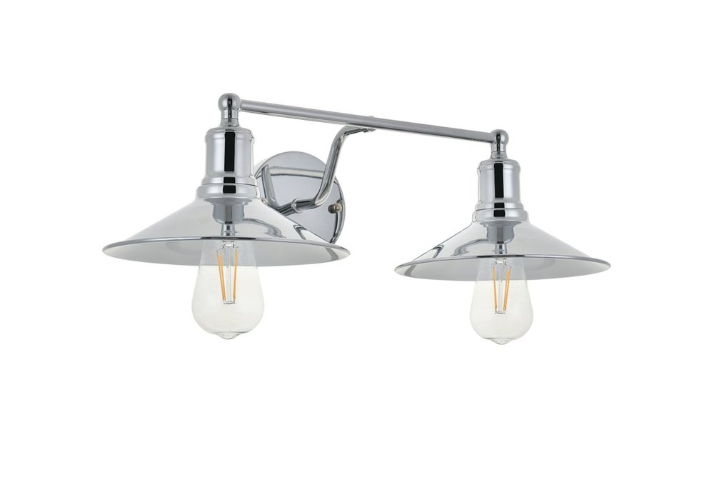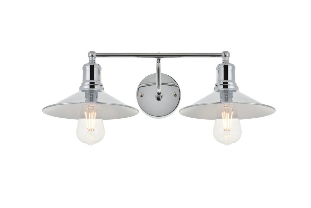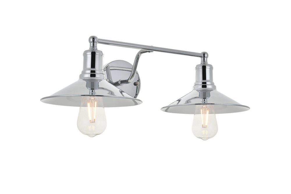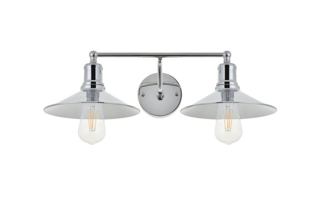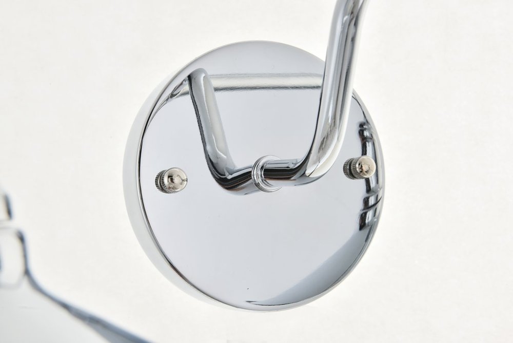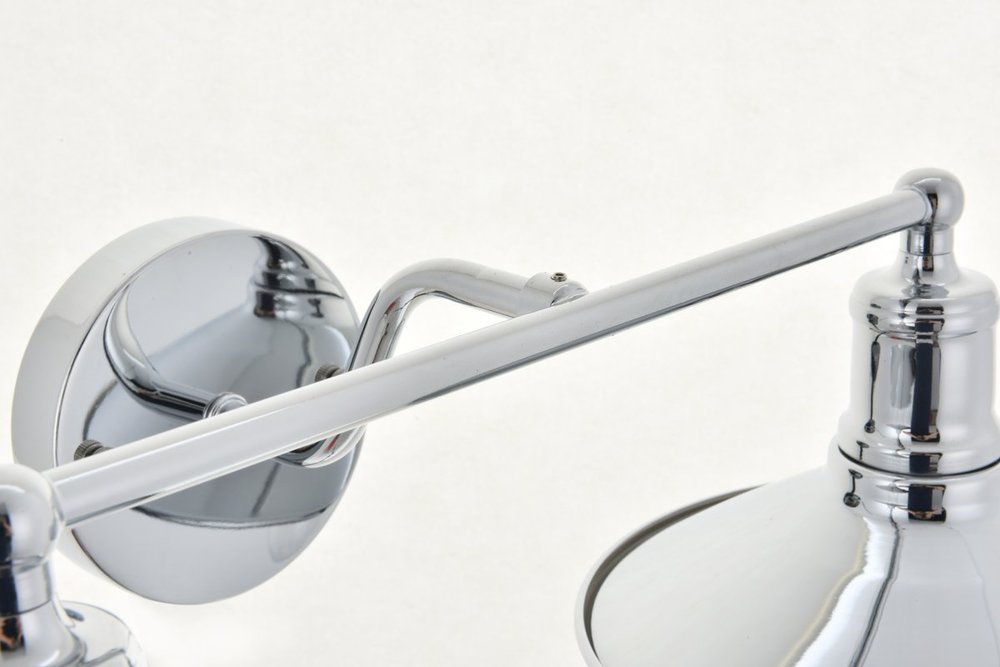 Chrome finish 2-light wall sconce with a curved arm and cone shaped shade