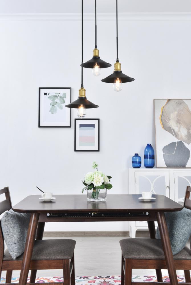 The lilting personality of the Etude pendant lamp in a brass and black finish will have you singing for days! Whether the adjustable arms catch your attention or its classic lampshade that makes you speechless, this 3-light pendant lamp will surely improve the style of any room in your home.