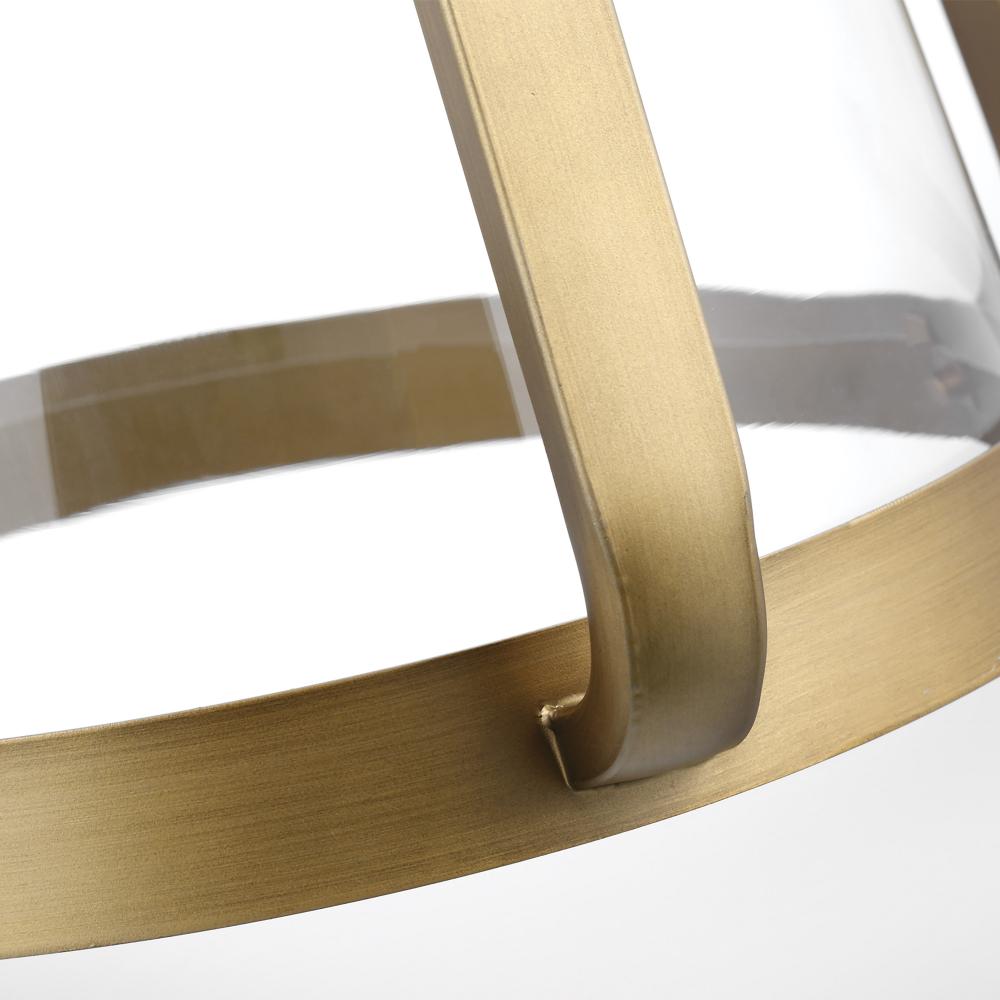 Glass and overlaying metal create a nice depth with the Everett large pendant. The clear, tapered glass provide 360-degree illuminations. When paired with a vintage bulb, adds a touch of nostalgia complements the transitional design. A natural brass finish