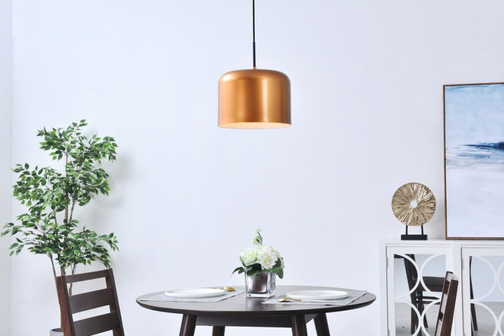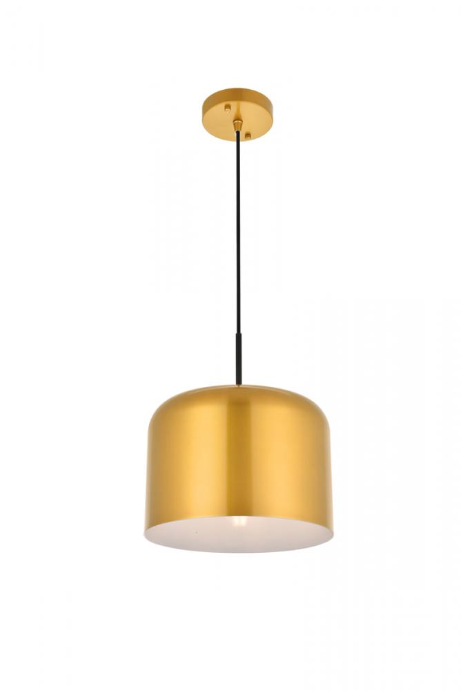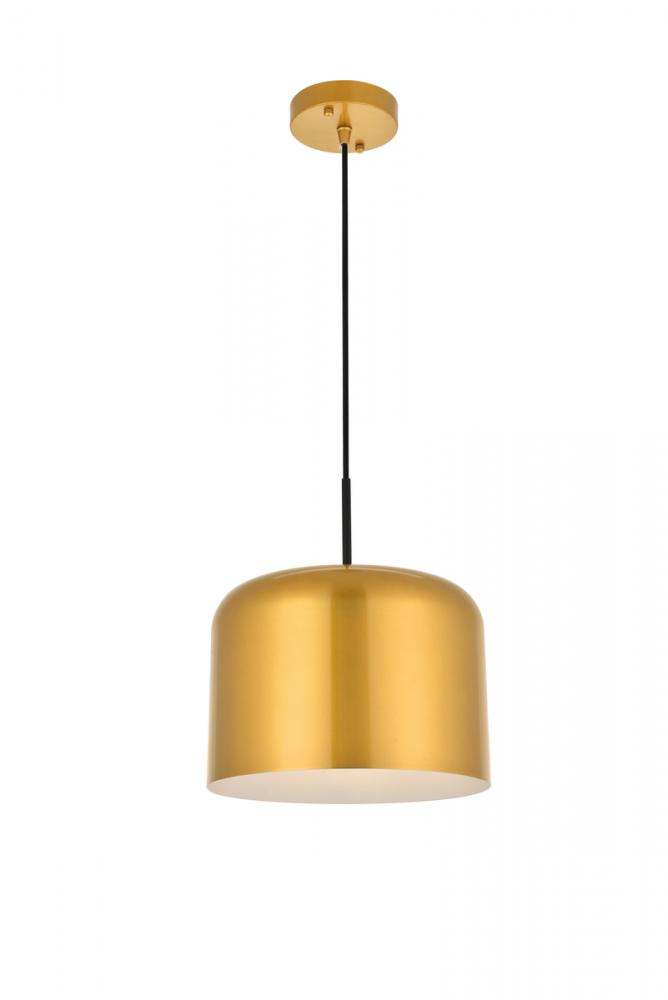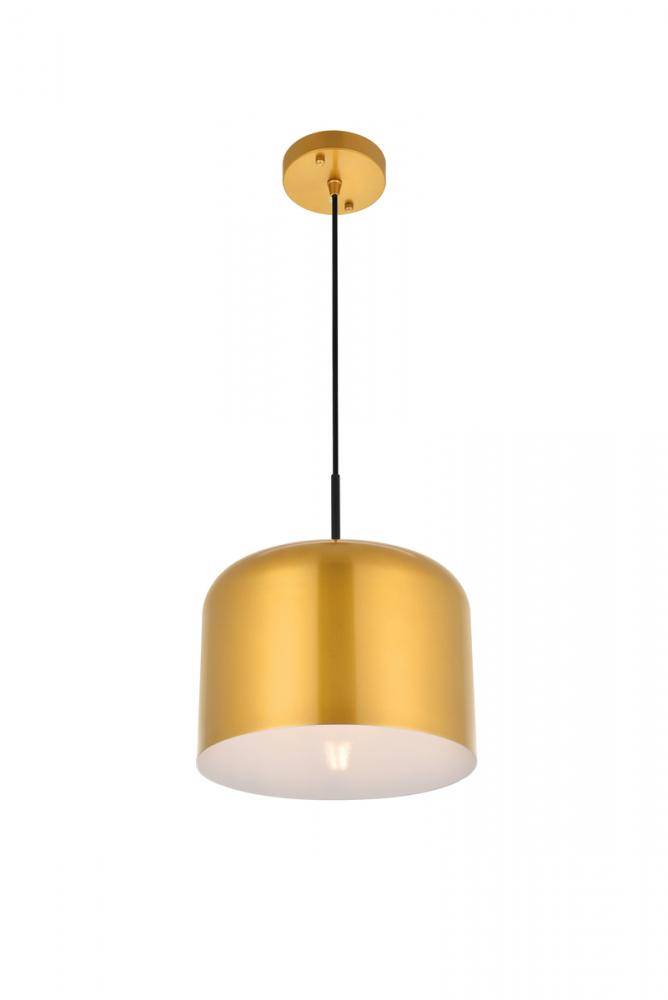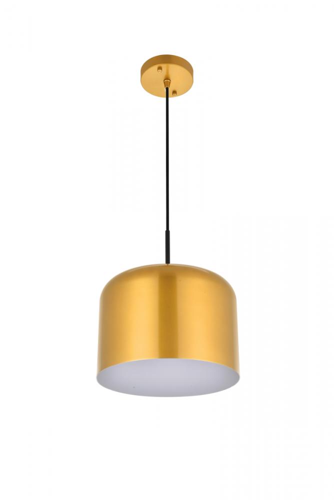 Contemporary satin gold finish pendant lamp with a cylinder shaped shade