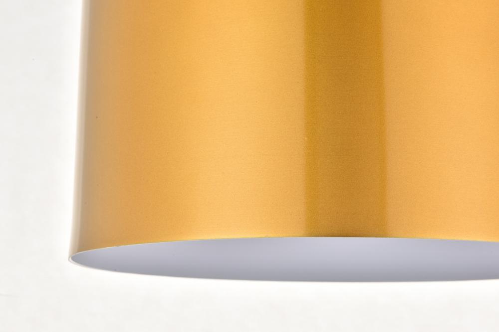 Cylinder shaped satin gold finish aluminum shade with white finish interior