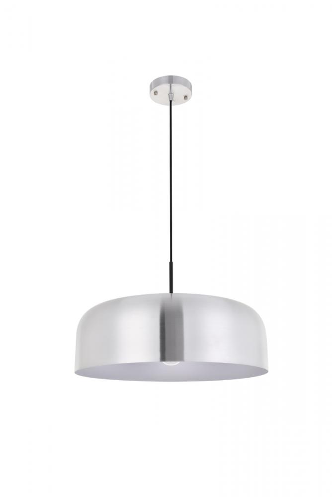 Contemporary brushed nickel finish pendant lamp with a cylinder shaped shade
