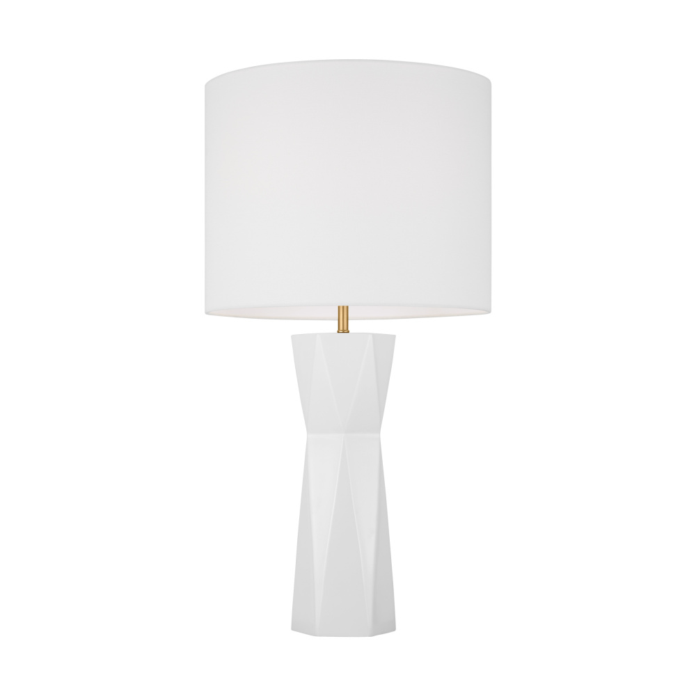 Fernwood is a multifaceted column table lamp in rich tones that gives visual dimension to a mid-century look, adding a refined modern note to your space. It features a square base with a gleaming gold finish crafted from resin, and it showcases a textured design for an Art Deco appeal. Fernwood is capped with a white line shade dispersing light from a medium-base bulb (included).