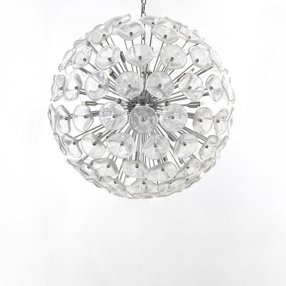 The Fiori Collection boasts of a contemporary design fused with historic craftsmanship. A floral sphere, comprised with hand formed Murano glass crystal petals, is eloquently designed in an amazing combination of glass and chrome while delivering an amazin
