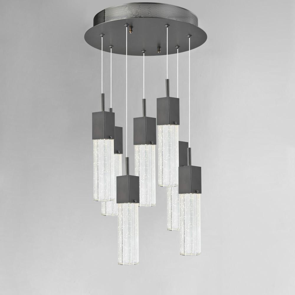 The Fizz Collection's effervescent bubbles encased in rectangular glass cubes come to life when illuminated by high output LEDs. The etched lines add linear detail as they extend from the Polished Chrome fitters.
