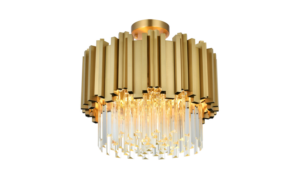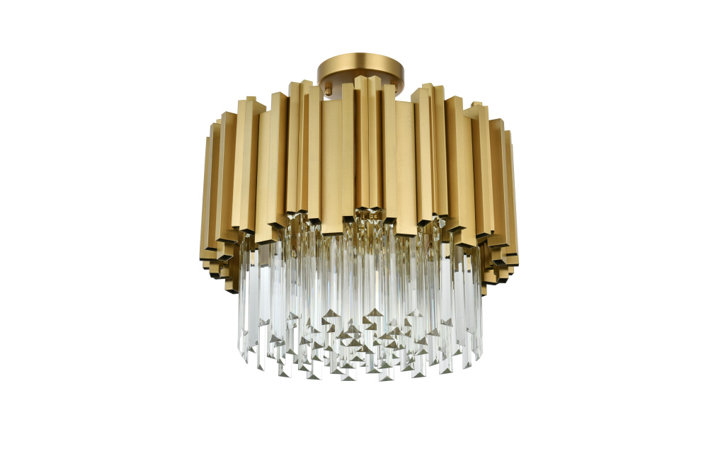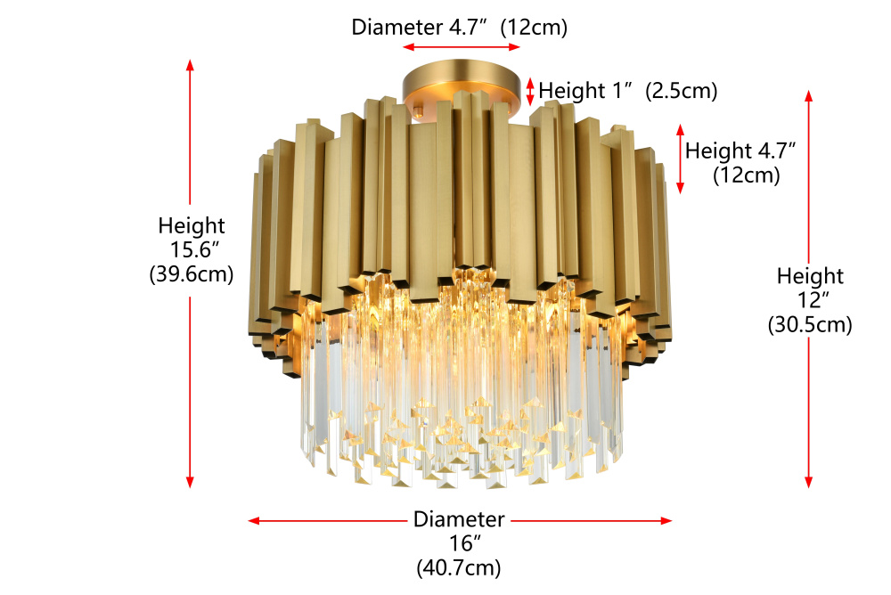Transform your ceiling into a work of modern art with this flush mount chandelier, where bold geometry meets radiant brilliance. Crafted from durable iron and adorned with staggered clear glass pieces, this design creates a dynamic interplay of light and form. The staggered glass refracts light beautifully, casting mesmerizing patterns and filling the room with a soft, glowing ambiance. Ethereal and refined, the flush mount showcases a harmonious blend of sharp architectural edges and shimmering glass detail, creating a design that feels both structured and luminous. Fully dimmable, it lets you tailor the lighting to suit your mood—whether you need bright illumination or a cozy, intimate glow.Available in satin gold for a warm and luxurious finish, chrome for sleek, contemporary refinement, or black for bold, dramatic contrast, this flush mount chandelier complements any interior style. Perfect for spaces with lower ceilings, such as entryways, bedrooms, or living rooms, it delivers a bold design statement thout overwhelming the room. Complete with a matching canopy for a seamless look, this flush mount is as functional as it is captivating. Let it redefine your space with its radiant charm and dynamic beauty.