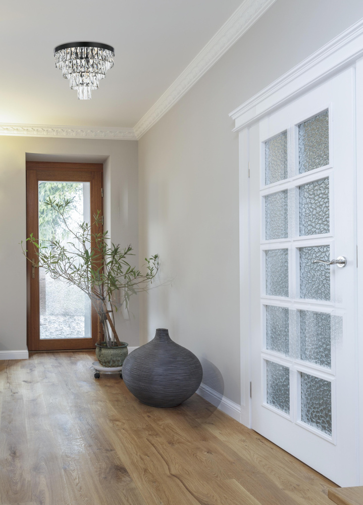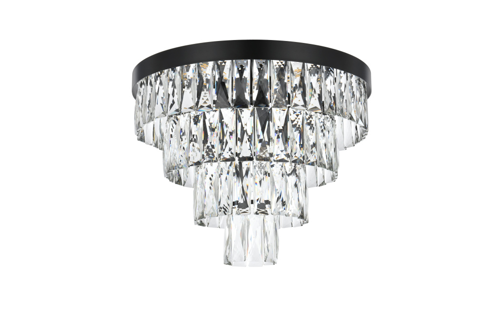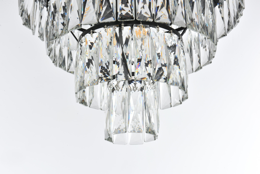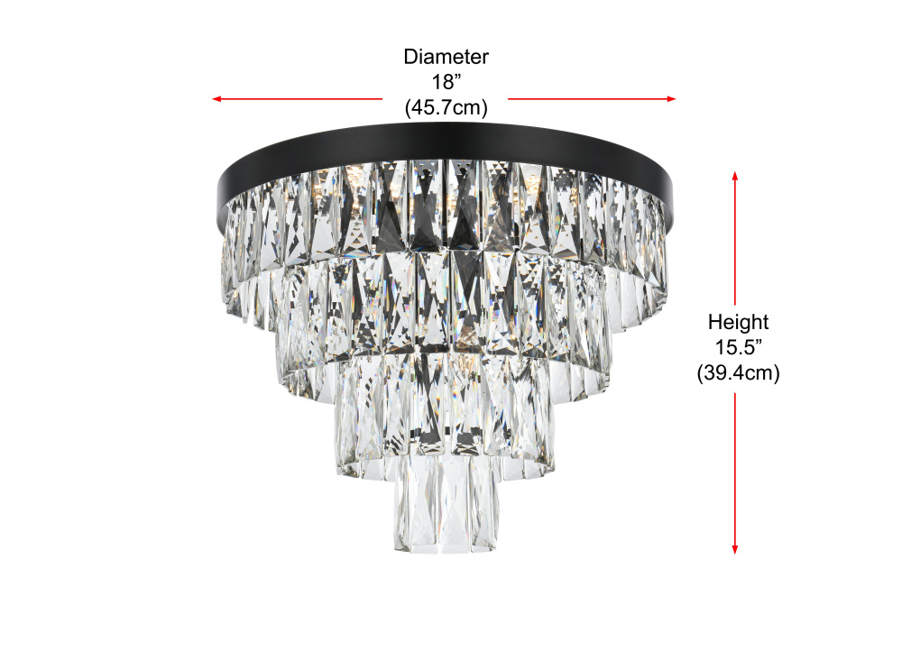 Transform your space with this extraordinary flush mount that reimagines classical crystal design for contemporary interiors. The masterfully engineered silhouette features four graduating tiers that create a spectacular inverted pyramid, reminiscent of a frozen cascade captured in mid-descent. Each precisely cut rectangular crystal is strategically positioned to maximize light play, creating mesmerizing displays of fractured light throughout your space. The substantial scale makes this fixture an ideal centerpiece for bedrooms, closets, hallways, sophisticated dining rooms, or executive offices. The thoughtful construction incorporates six light sources distributed throughout the tiers, ensuring both spectacular illumination and enchanting crystal animation. The robust iron framework provides a secure foundation while maintaining visual lightness, allowing the crystals to appear as if floating in space. Available in reflective chrome, sophisticated black, or warm satin gold, this flush mount makes an unforgettable statement while maintaining refined restraint. The cascading arrangement creates a sense of movement and flow, while the geometric precision of each crystal adds contemporary edge to the classical form. This is more than a light fixture – it's an architectural feature that transforms your space through its commanding presence and spectacular light performanc