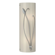A hand-forged iron leaf and stems adorn the glass of this light. The contrast between the metal and bright glass delivers a compelling visual. Shaped by artisans at our forge here in Vermont, each piece is unique.