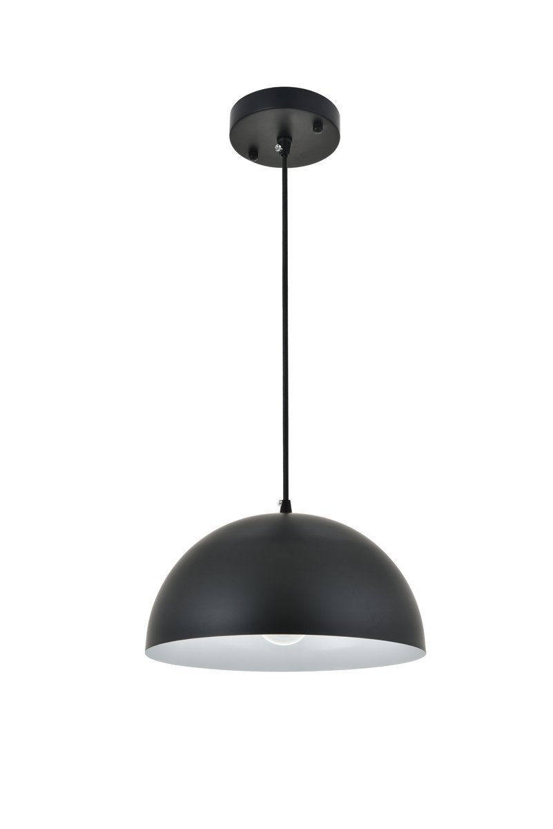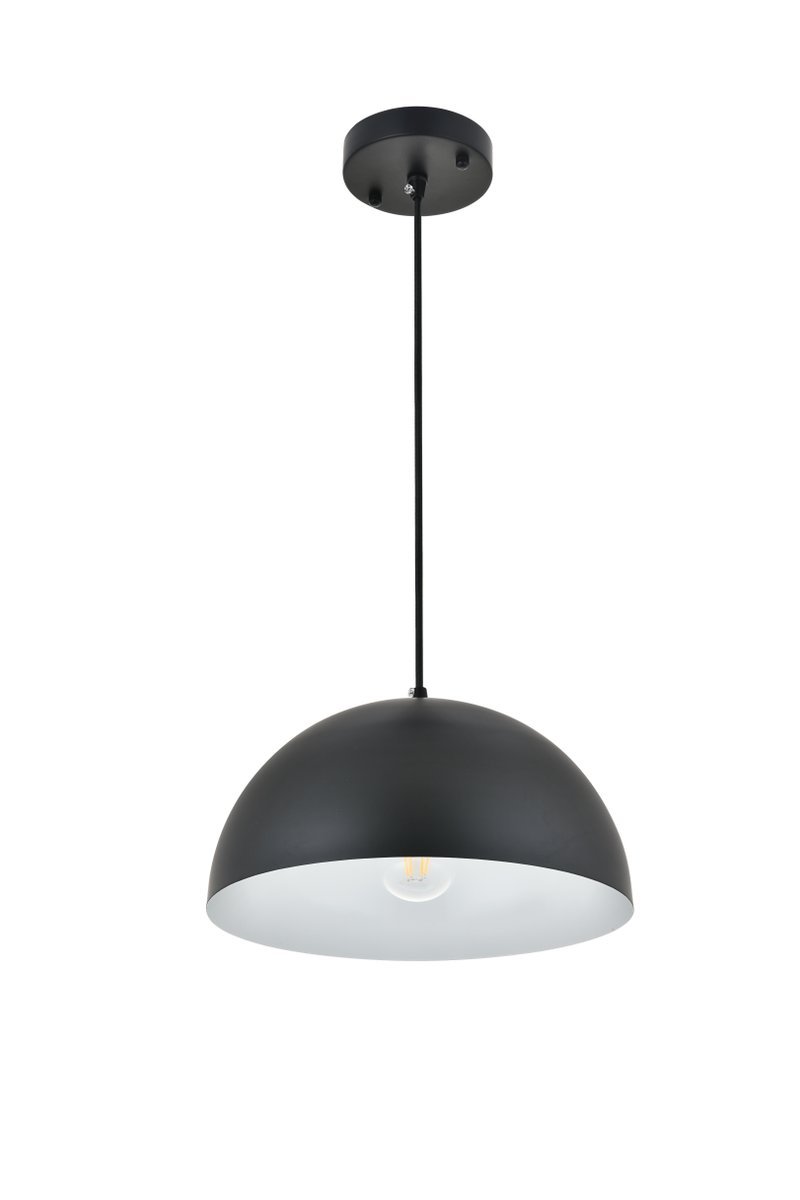 The Forte collection pendant lamp will surely create a modern and bold center point for any room. The hemispherical shade with a black finish exterior and white finish interior creates a dauntless personality that will illuminate any darkness with its reliable light. Without fail, Forte will excel at brightening your home, whether it's at your entryway, living room, or dining room.