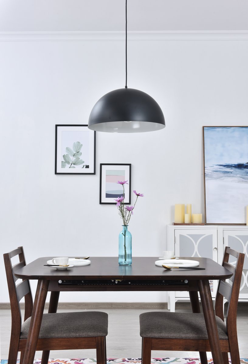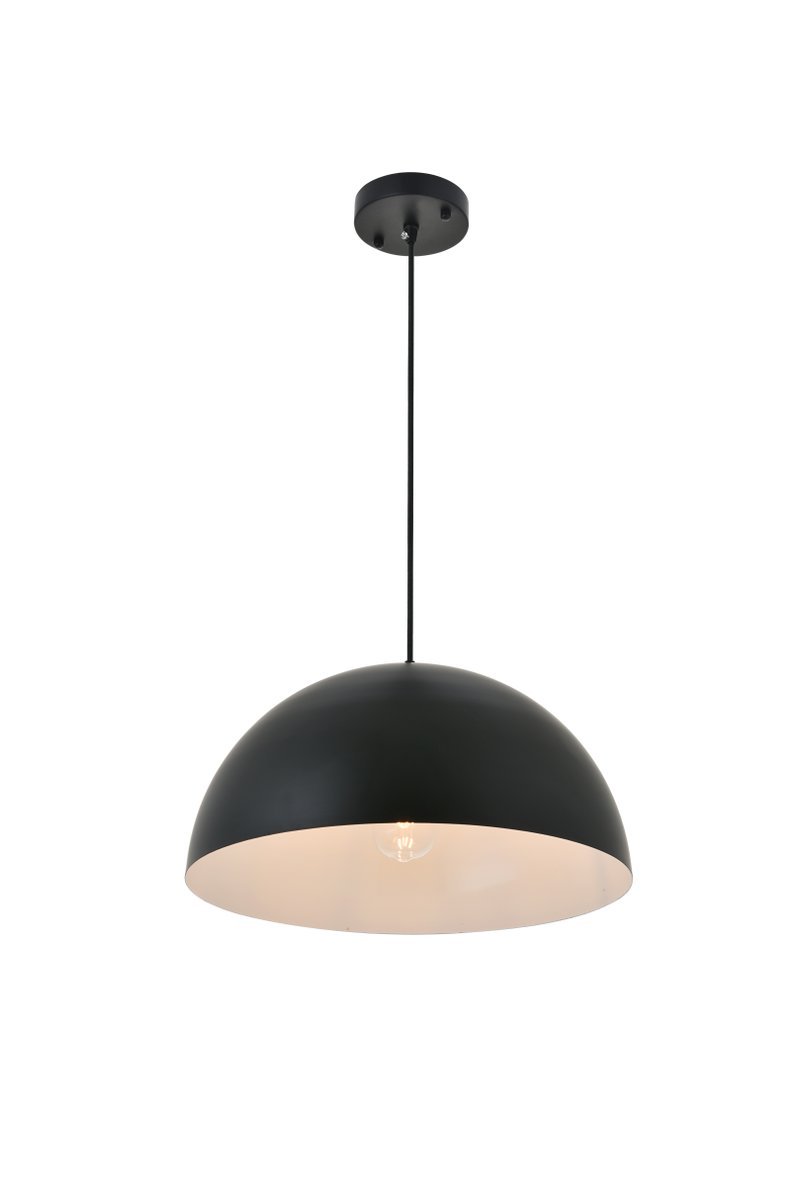 Black finish pendant light with dome shaped shade