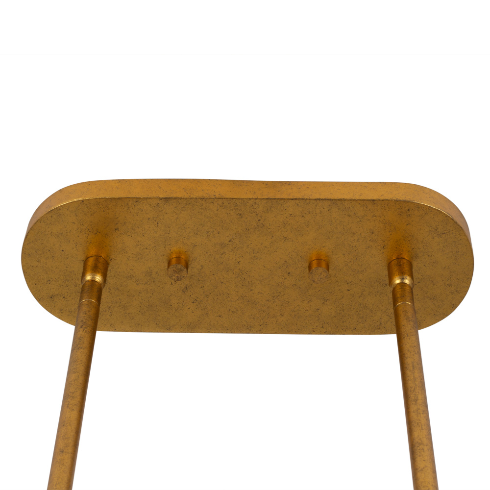 Drawing inspiration from origami, geometric designs, and the natural elegance of crystal cuts, the Fractal collection showcases a captivating zig-zag frame pattern mirrored in the capiz shade’s form. It emanates a gentle, warm glow that beautifully highlights its intricate design and understated shape. The piece is completed with a hand-applied Oxidized Gold Leaf (OL) finish, adding a touch of refined artistry.