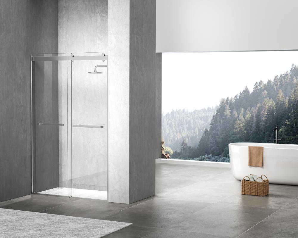 Transform your bathroom into a luxurious oasis with our stunning shower doors! Our doors are designed to offer both functionality and style, making your shower experience more enjoyable and comfortable. Crafted from high quality materials, our shower doors are not only durable but also easy to maintain, making them a practical and long lasting additional to any bathroom. We have four finishes available to choose from to help complement your bathroom décor and aesthetics. Frameless double sliding shower door with 46" - 48" width adjustment range, cut the rails to size. Full length shower door seal thresholds are included to prevent any leaks. Anti-jump mechanism included to ensure afe and smooth door operation.