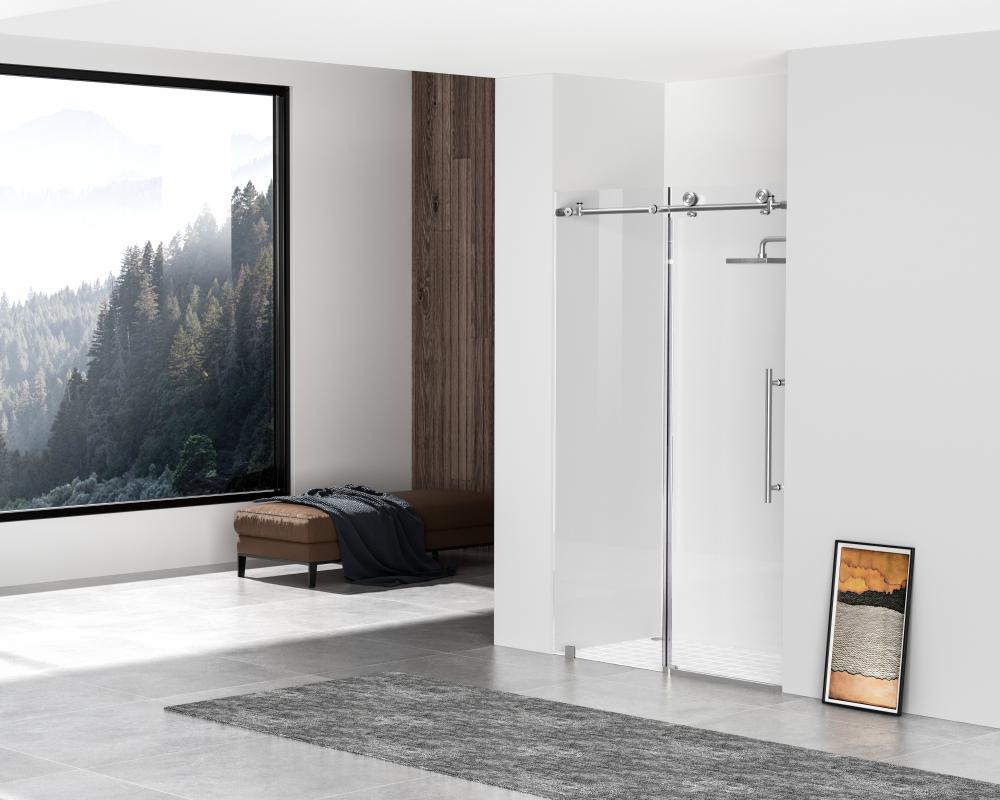 Transform your bathroom into a luxurious oasis with our stunning shower doors! Our doors are designed to offer both functionality and style, making your shower experience more enjoyable and comfortable. Crafted from high quality materials, our shower doors are not only durable but also easy to maintain, making them a practical and long lasting additional to any bathroom. We have four finishes available to choose from to help complement your bathroom décor and aesthetics. Frameless hinged shower door with heavy-duty hinges and in-line panel supported by low profile clips. Full length shower door seal thresholds are included to prevent any leaks.