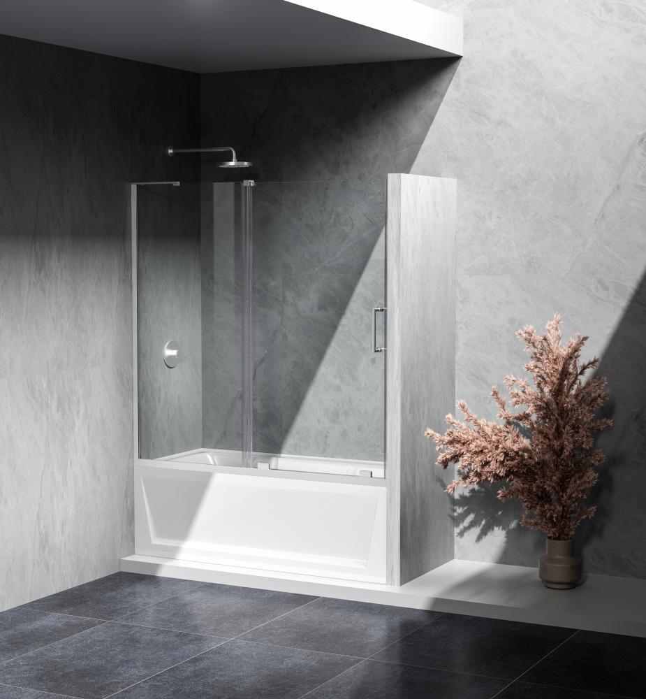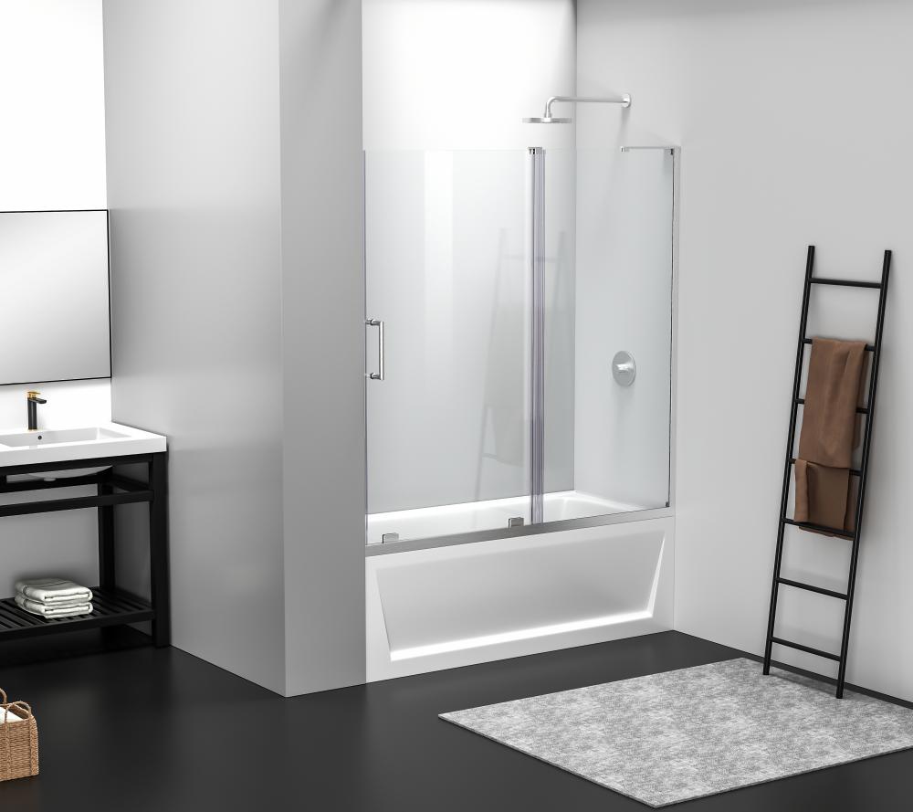 Transform your bathroom into a luxurious oasis with our stunning modern shower tub doors! Our doors are designed to offer both functionality and style, making your shower experience more enjoyable and comfortable. Crafted from high quality materials, our shower tub doors are not only durable but also easy to maintain, making them a practical and long lasting additional to any bathroom. We have four finishes available to choose from to help complement your bathroom décor and aesthetics. Frameless double sliding tub door with 56" - 60" width adjustment range, cut the rails to size. Full length shower door seal thresholds are included to prevent any leaks. Anti-jump mechanism included to ensure safe and smooth door operation.