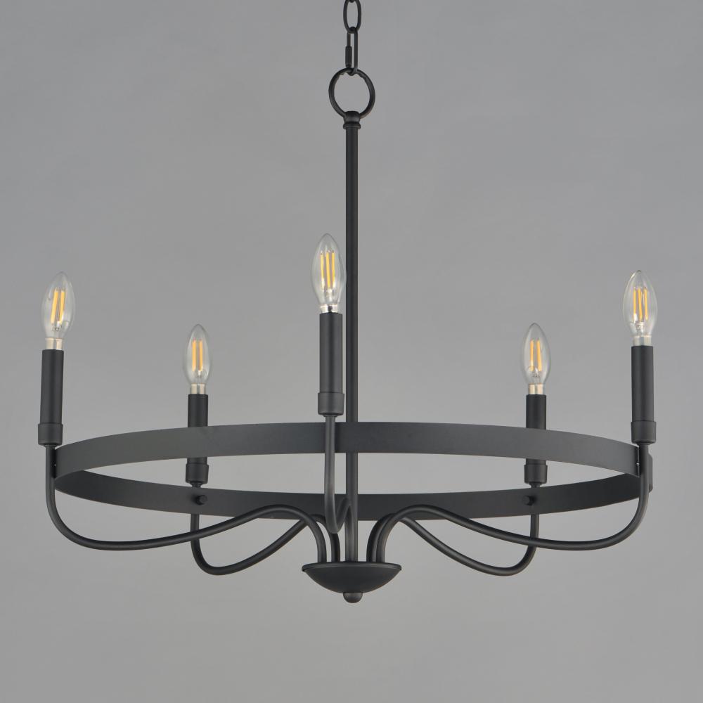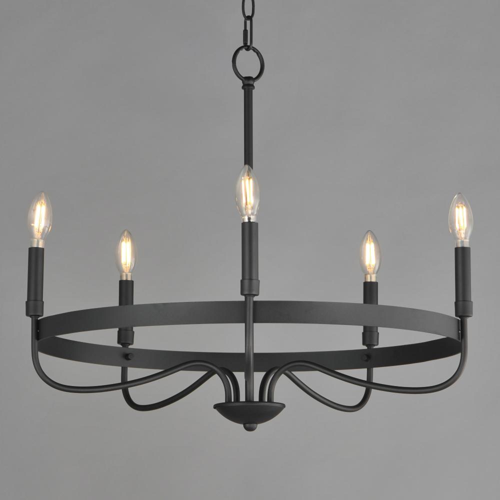 Elegant simple chandelier forms in your choice of Matte Black, Satin Nickel, or Heritage Brass. The timeless and transitional appeal of this series pairs well with a wide range of aesthetics.