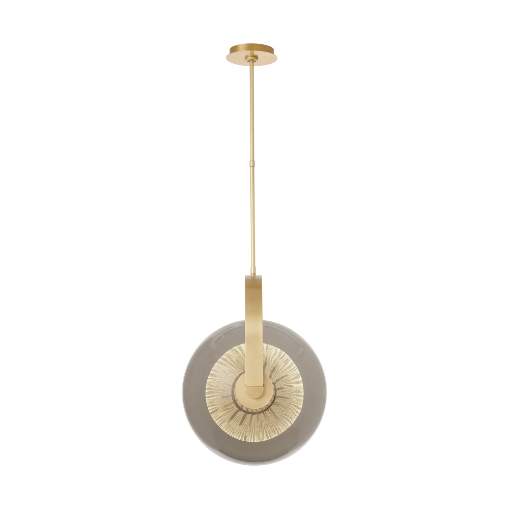 Inspired by mid-century design, the Fues Pendant celebrates the spherical geometry with center glass diffuser