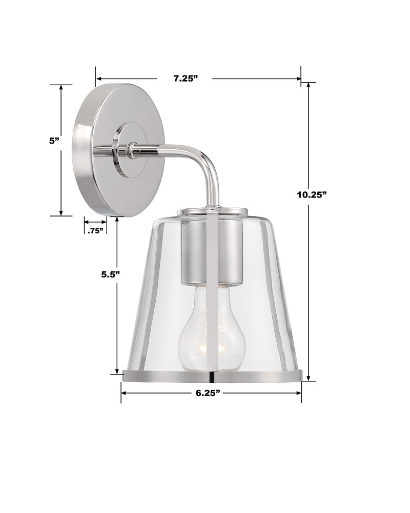 The tailored and versatile Fulton wall sconce has contrasting materials to create an eye-catching display. This fixture features a tapered glass shade that casts illumination downwards, providing bright illumination to your modern bathroom. The white or clear glass is wrapped in a metal ring with tailored lines creating an elegant contrast. Finishes include Polished Nickel, Antique Gold, and Matte Black.